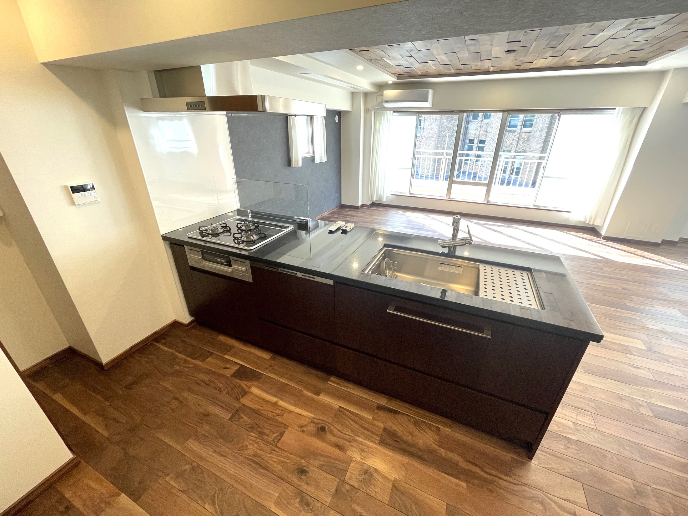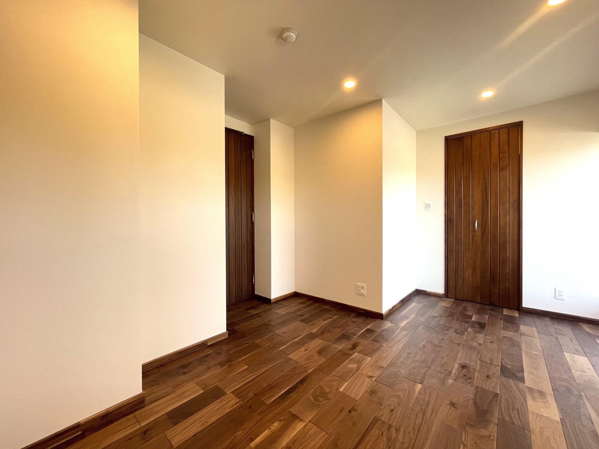 内装には、手触りの良い天然無垢材のフローリングと建具が採用されています。既存の内装を全て解体し、配管から一新したフルリノベーションにより、1977年11月築という築年数を感じさせない、新築同様の住み心地を実現しています。水まわりも充実しており、1620サイズのゆったりとしたバスルーム、ツインボウルの洗面台、手洗いスペース付きのトイレと、日々の暮らしを快適にする設備が整っています。