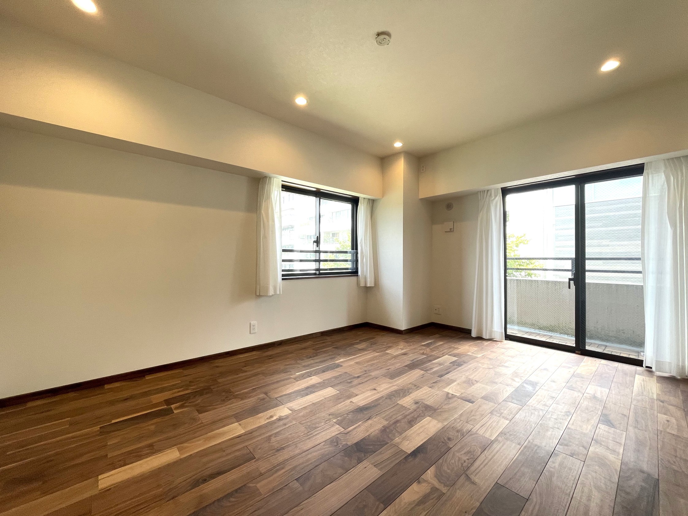 間取りは3LDKで、各居室も申し分ない広さを確保しています。ウォークインクローゼット付きの約10.0帖と約7.5帖の洋室、クローゼット付きの約6.7帖の洋室があり、収納面でも充実しています。2階という高さは、庭園のような景色を間近で楽しめる絶好のポジションで、有栖川宮記念公園の豊かな緑を身近に感じることができます。