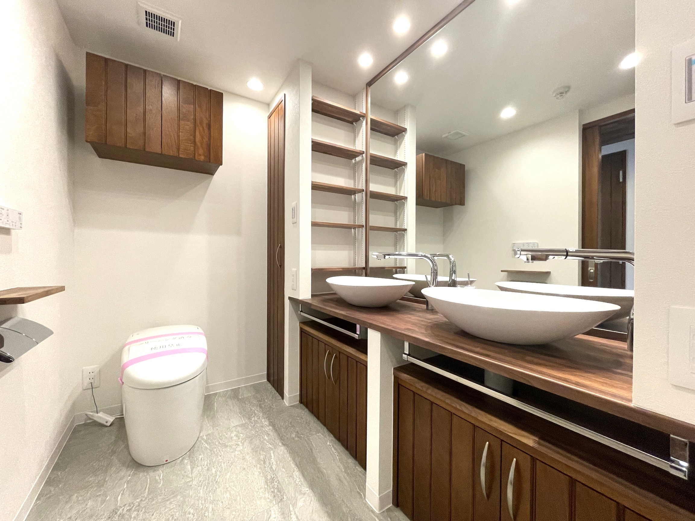 水回り設備も上質な仕様となっています。1620サイズのゆったりとしたバスルームでは、一日の疲れを癒すリラックスタイムをお楽しみいただけます。ツインボウルの洗面台は朝の身支度時間を効率的にし、トイレは2か所設置されているため、来客時にも配慮が行き届いています。スロップシンク付きのユーティリティルームも備えており、家事の効率性も向上します。